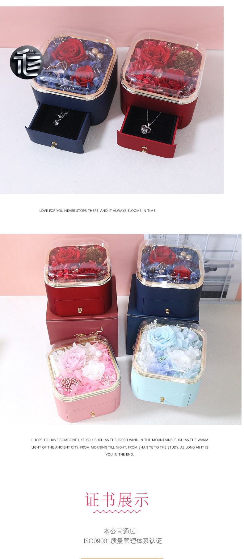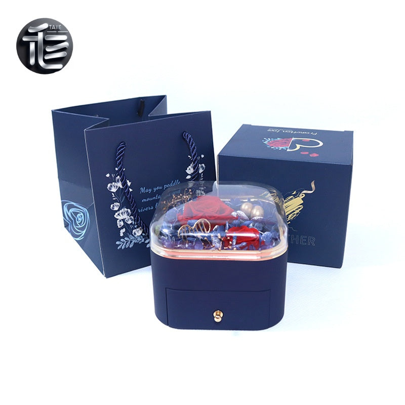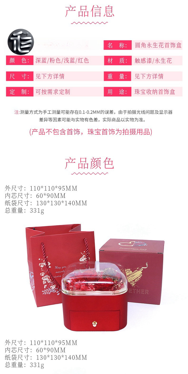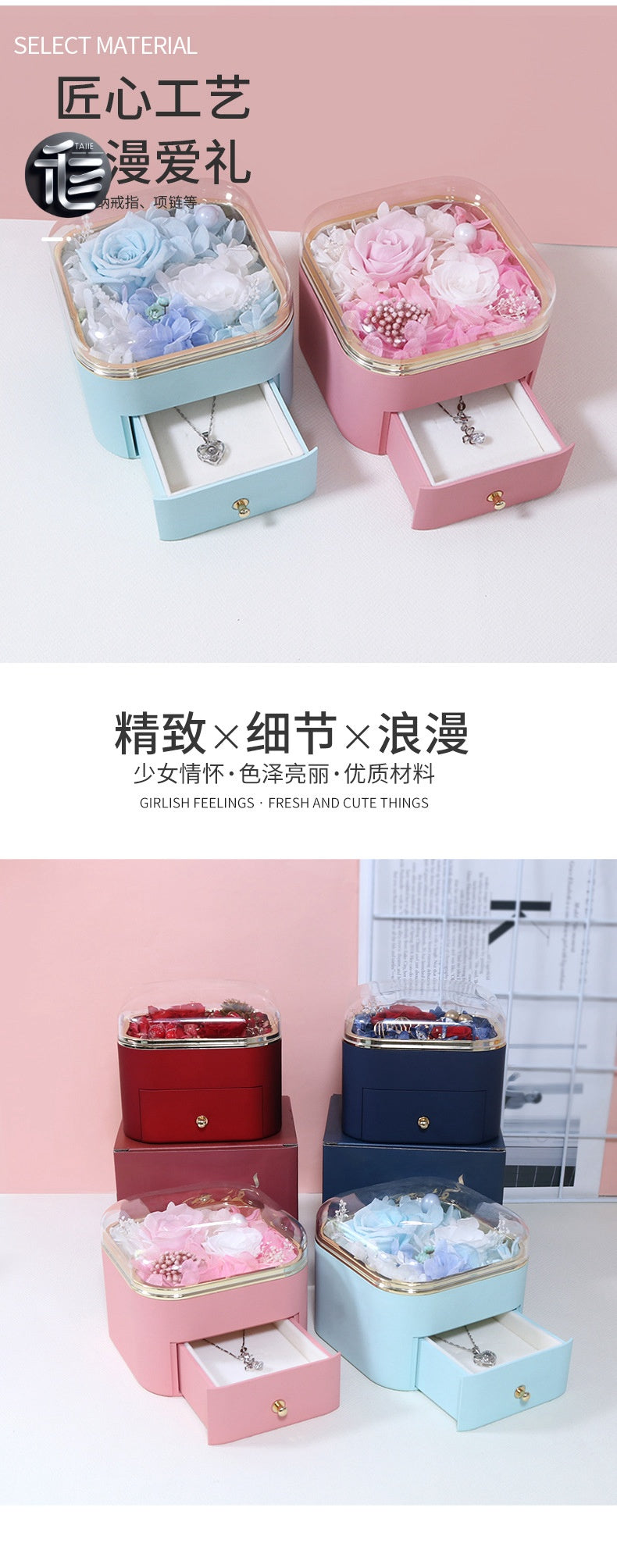 High-end design: The plastic body is sprayed with matte piano lacquer, the bread-shaped high-transparency acrylic lid displays rose flowers inside, golden snap fasteners, and when opened, a set is placed inside, bringing continuous surprises