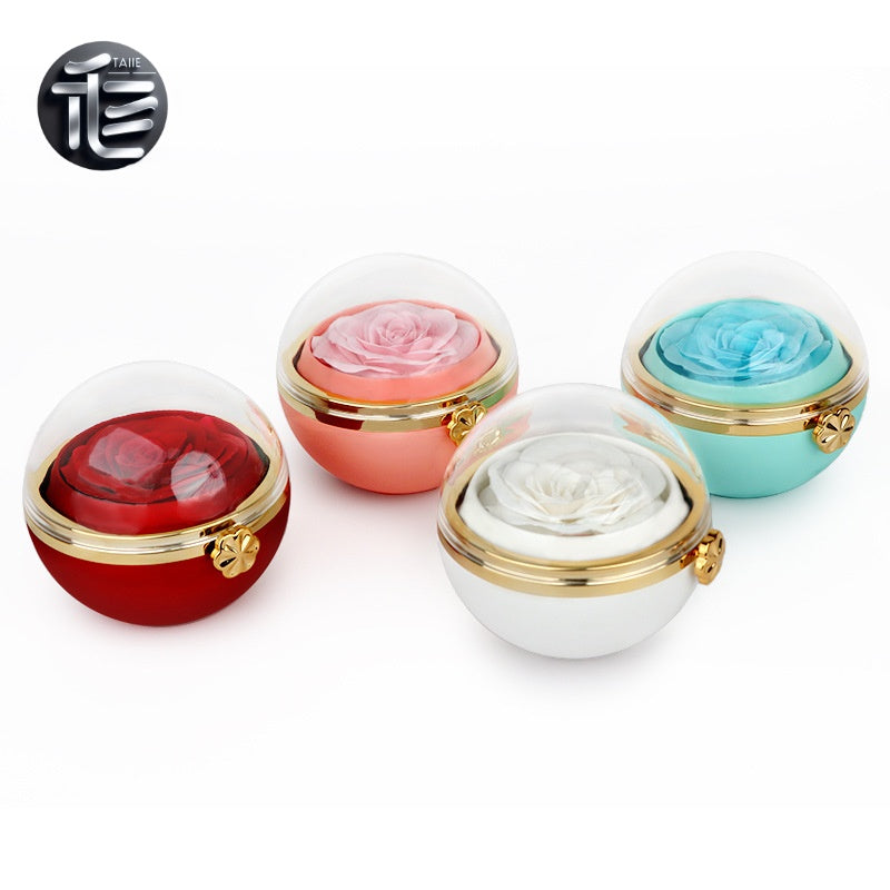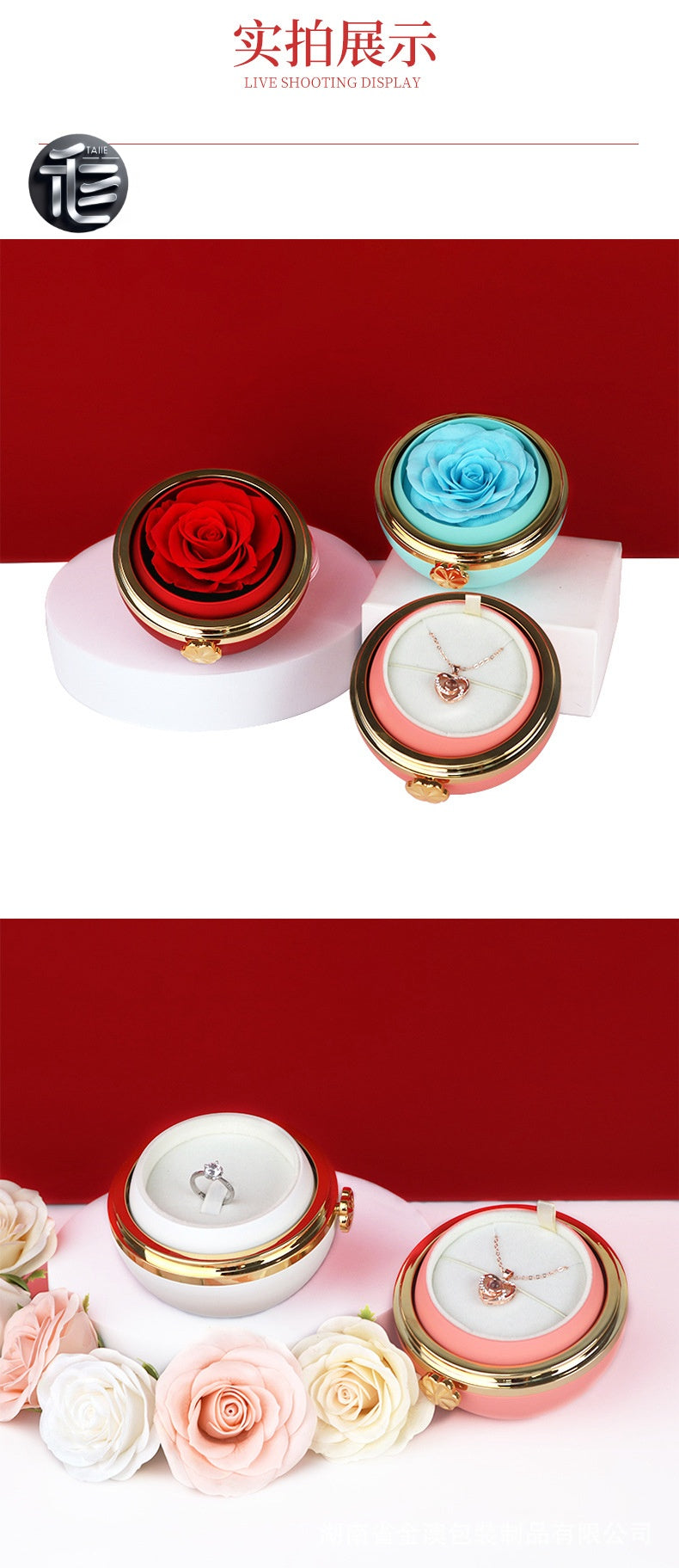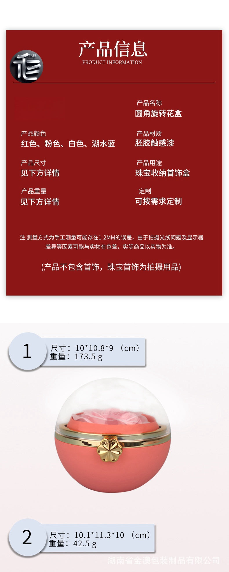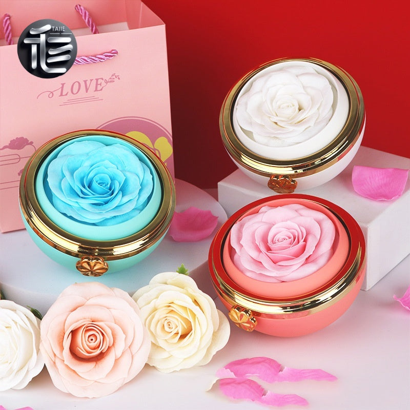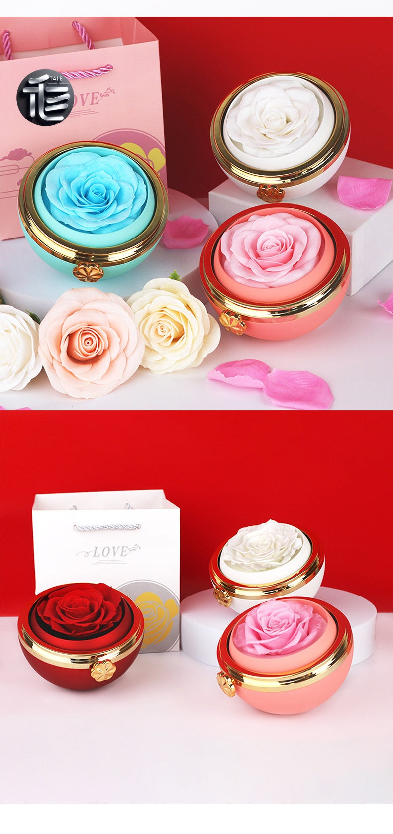 High-end design: The plastic body is sprayed with matte piano lacquer on the outside, and the bread-shaped high-transparency acrylic lid displays rose flowers inside. The golden buckle can be rotated and opened to hold the set, with continuous surprises