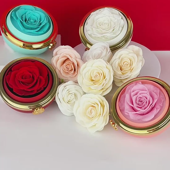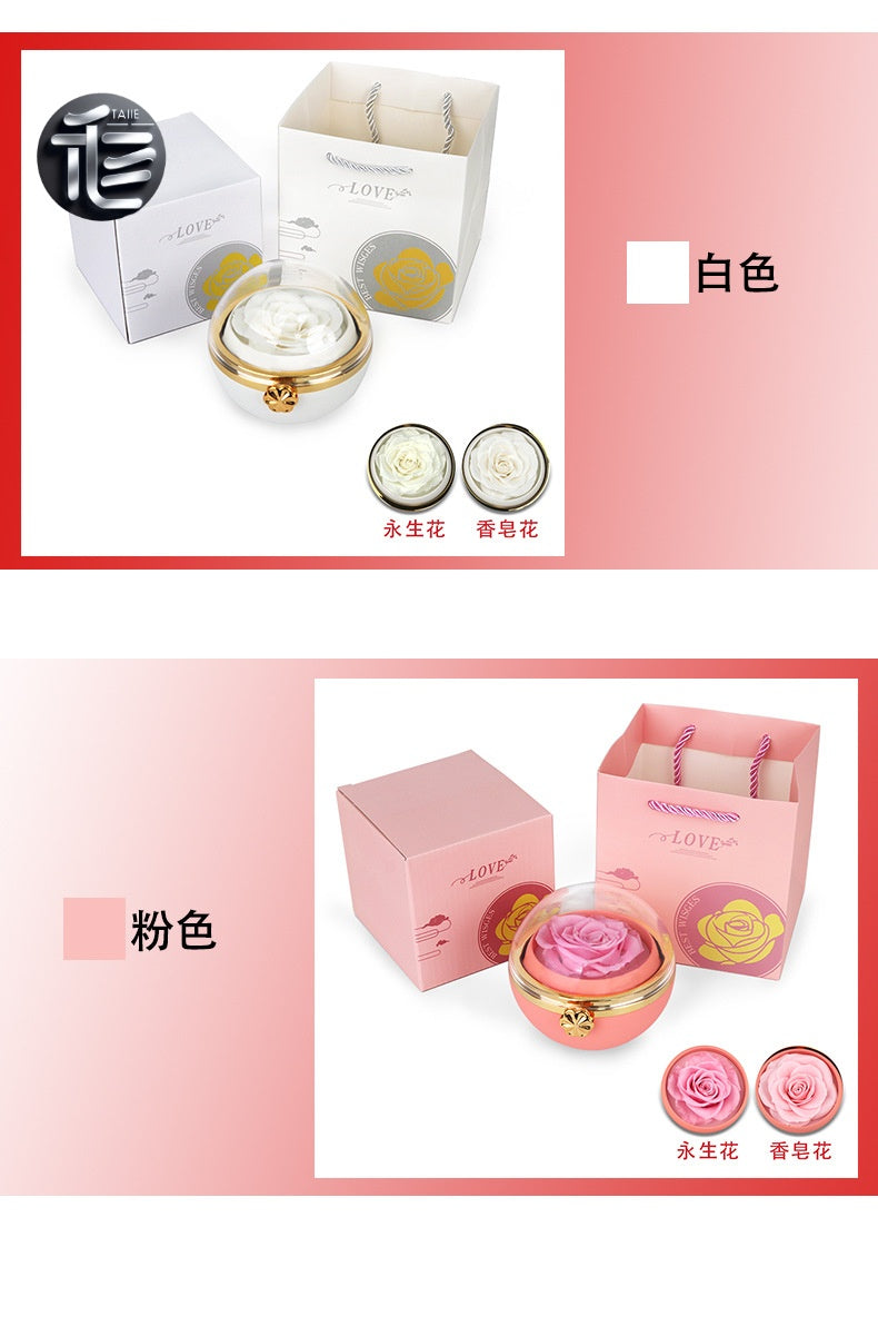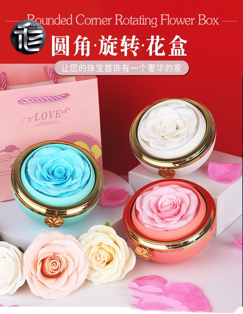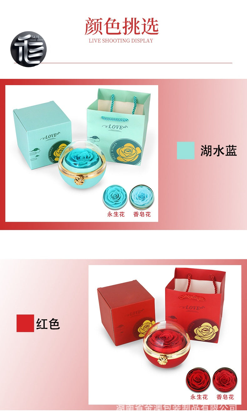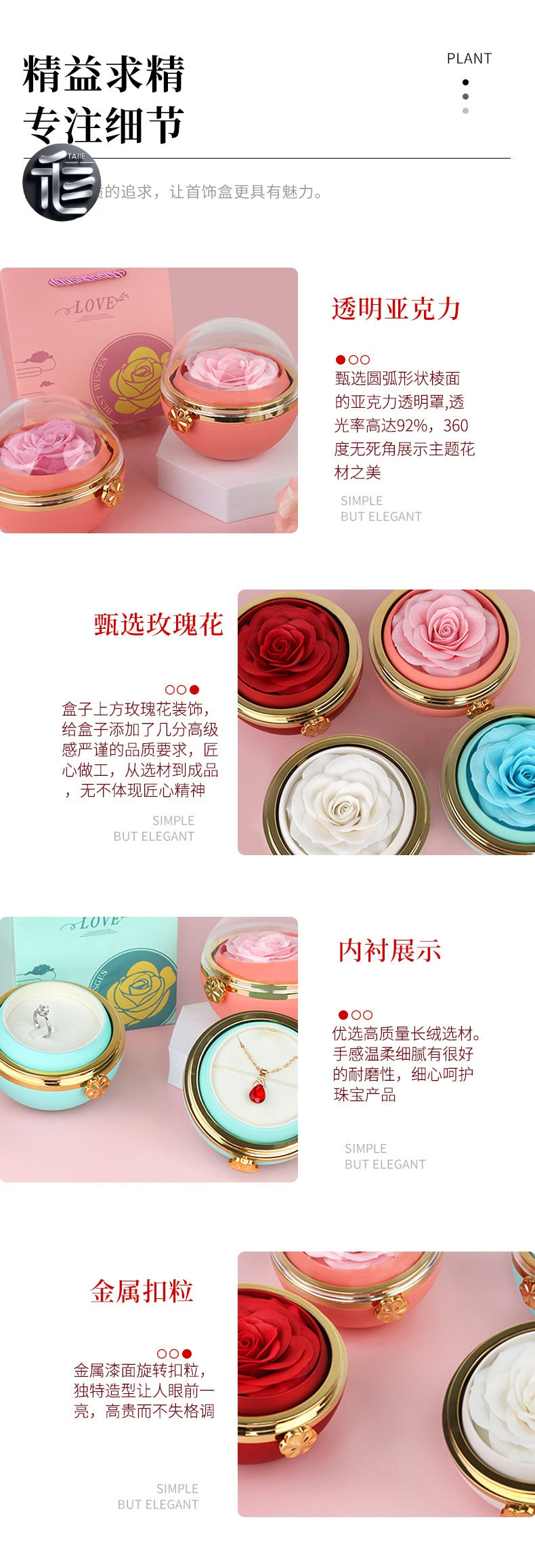 High-end design: The plastic body is sprayed with matte piano lacquer on the outside, and the bread-shaped high-transparency acrylic lid displays rose flowers inside. The golden buckle can be rotated and opened to hold the set, with continuous surprises