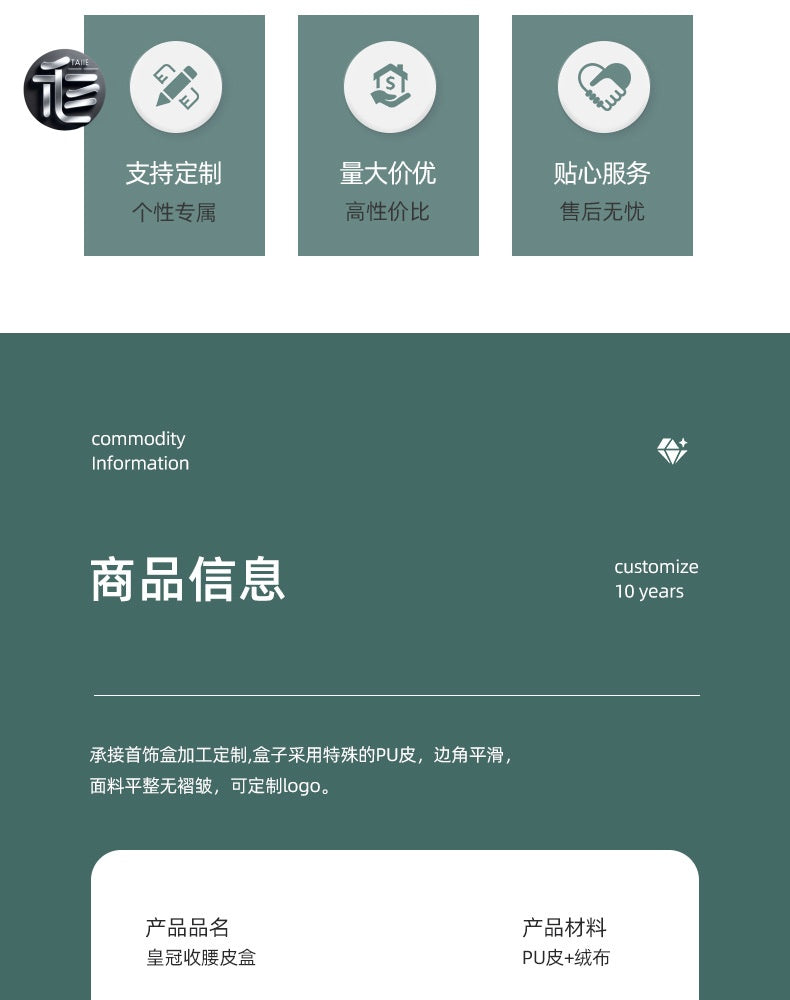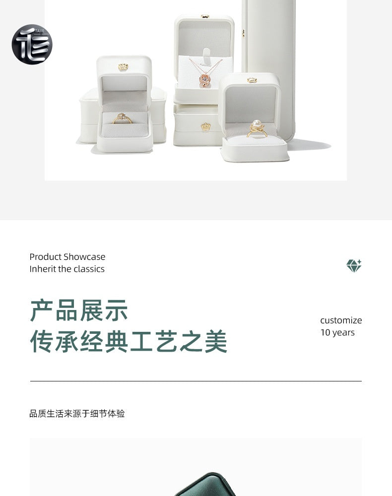 High-end design: The plastic base is wrapped with high-quality faux leather, featuring rounded corners and a concave belly. The inside is equipped with high-quality bead velvet, and the box buckle is decorated with a golden crown, presenting a high-end and elegant look