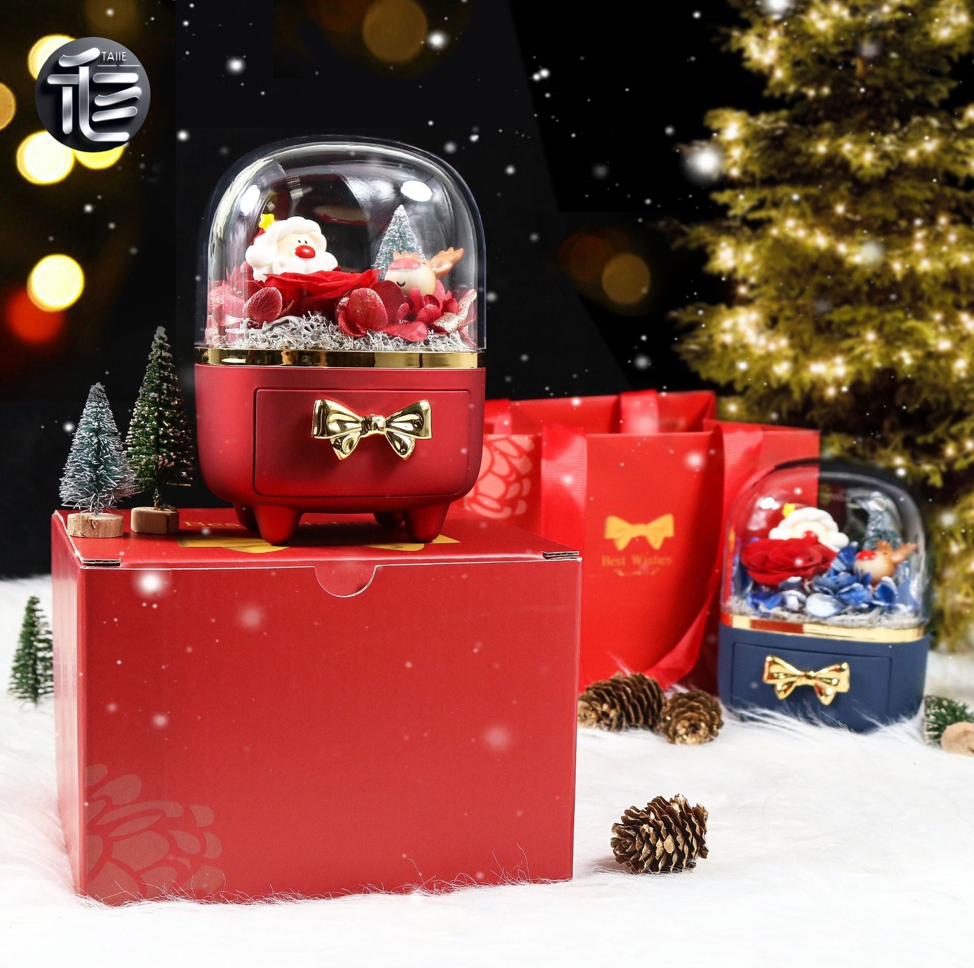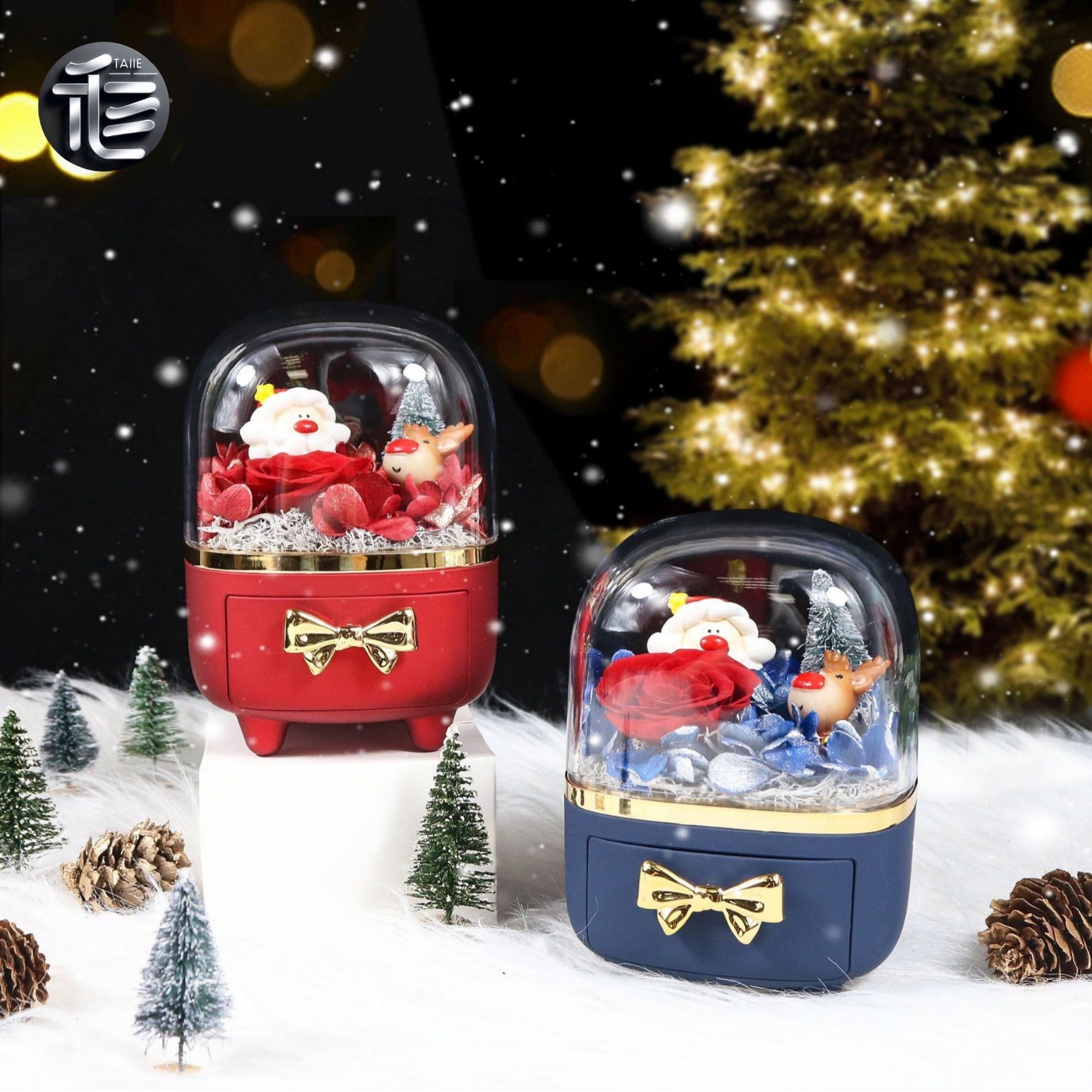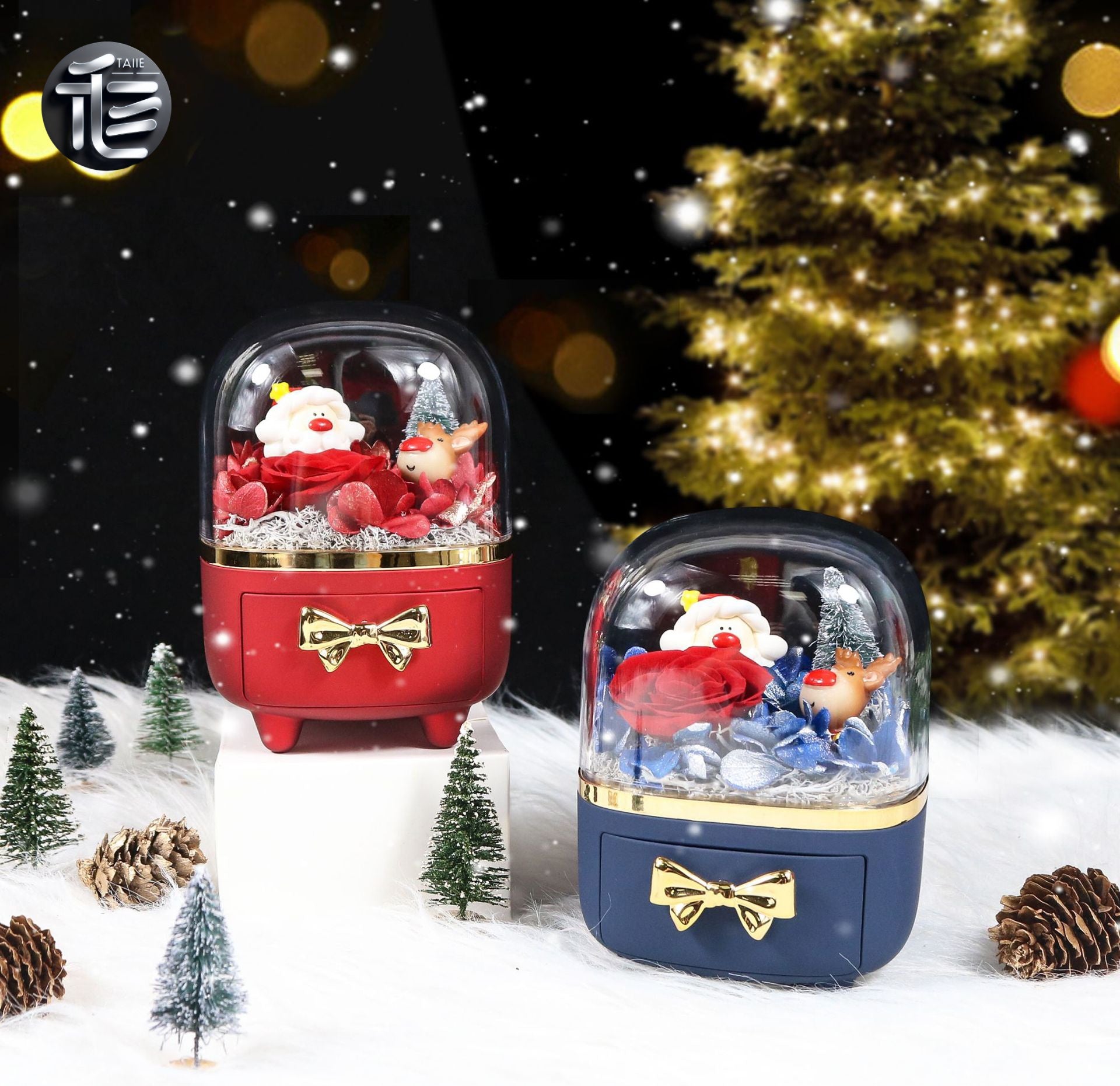 High-end design: Plastic body, coated with matte piano paint, with a high-transparency acrylic cover on the outside to prevent dust, the inner box is made of high-quality suede material, and is equipped with dolls and artificial flowers inside. The drawer handle is transformed into a bow